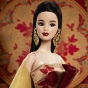 Eight decades of iconic toymaking warrants a special design to mark the occasion. Behold our Mattel 80th Anniversary Barbie a stunning keepsake that honors the legacy of a company that has inspired generations. She looks red carpet-ready in a glittery gown accentuated by bow-like sleeves and a dramatic tulle bustle. Ruby pumps complement her dazzling look, while red nails and drop earrings with a golden “M” pay stylish homage to the old-school Matty Mattel logo.