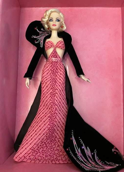 Renowned fashion designer Bob Mackie is back with another glamorous Barbie. She is the embodiment of “Pretty in Pink,” combining modern muse with the glamour of Hollywood's golden age. Her evening gown echoes Mackie's style and is complemented by an elegant, dramatic coat with intricately embroidered hem and shoulders. With her platinum blonde bob and extra-glamorous makeup, this Barbie is a true fashionista.