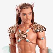 Weird Barbie is a breakout character from Barbie The Movie. She wears an outfit inspired by one seen in the feature film, a bright pink dress with colorful artwork and puffy sleeves, and green snakeskin boots. She also features short tousled hair and markings on her face to emulate a doll that’s been played with a little too hard