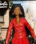 Internationally acclaimed costume and fashion designer Bob Mackie once again partners with Barbie to create a gorgeous Holiday Angel doll. She sparkles like starlight in a shimmering silver gown, with a crimson sash that drapes around her bodice and cascades to the floor in a shock of festive color. Glittery wings soar behind her, while drop earrings and stacked bracelets enhance her celestial sparkle.