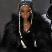 In 1968, Christie debuted and quickly became one of Barbie’s BFFs. To celebrate her 55th anniversary, we reimagined one of her beachy looks from the 1960s with modern details. Christie turns heads at a glamorous poolside soirée in a bright orange dress paired with a sheer overlay in a swirling, mod print. Strappy orange boots, golden hoops, and a “C” monogram necklace complement her floor-sweeping high-low look. Gorgeous curls swept back from her face showcase coral-hued makeup that nods to the original doll.