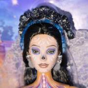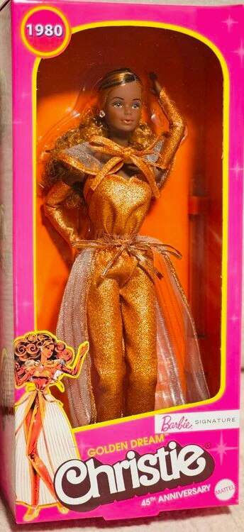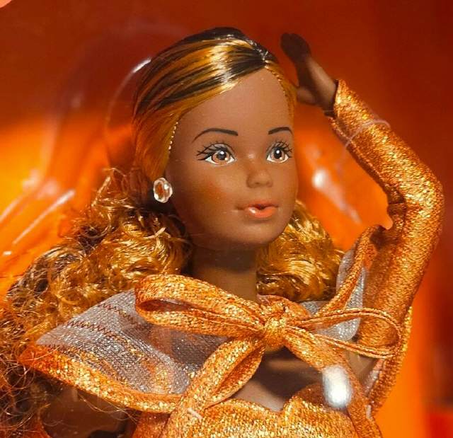 Chosen by member popular vote to make a comeback, and just in time for her 45th anniversary, Golden Dream Christie is a radical blast from the past. Her shimmery metallic copper jumpsuit perfectly encapsulates the flashy, funky fashion of the early ‘80s, and her strappy heels, glam gloves, golden jewelry, and versatile headpiece-turned-collar complete the disco queen look.